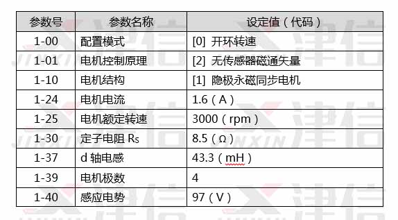丹佛斯FC360系列變頻器可以為各種工業(yè)應(yīng)用提供精確、有效的電機(jī)控制,并全面支持各類永磁同步電機(jī)。本案例中電機(jī)額定電流為1.6A,所以選擇0.75kW的變頻器已經(jīng)很充分了。變頻器使用VVCplus 控制模式,參數(shù)設(shè)置如下: