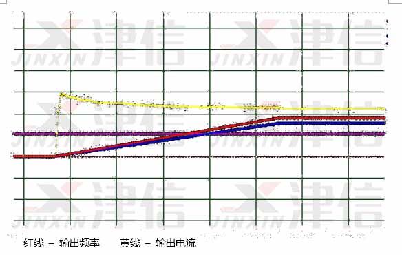 變頻器和電機(jī)參數(shù)設(shè)置完成后,開機(jī)啟動,下圖是加速時的轉(zhuǎn)速電流波型曲線,可以看出,電機(jī)加速及運(yùn)行平穩(wěn),電流輸出正常。