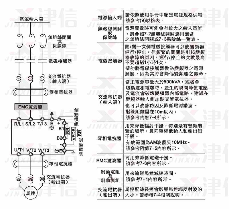 成放電需要一定時間。為避免危險,客戶可使用直流電壓表作測試。確認(rèn) 電壓值小于 25 Vdc 安全電壓值后,才能開始進(jìn)行配線。若使用者未讓變頻 器充分時間放電,內(nèi)部會有殘留電壓,此時進(jìn)行配線會造成電路短路并發(fā) 生火花現(xiàn)象,所以請用戶最好在無電壓條件下進(jìn)行作業(yè)以確保自身安全。