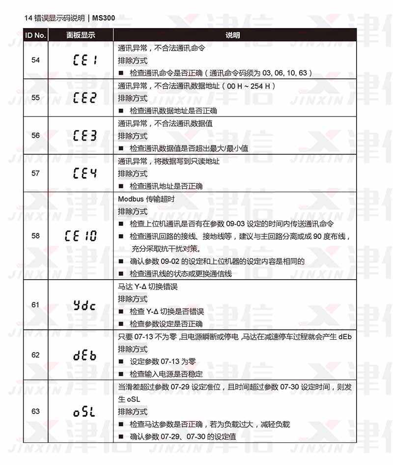 六、臺(tái)達(dá)MS300變頻器CE1,CE2,CE3,CE4,ydc,deb,CE10,OSL故障代碼