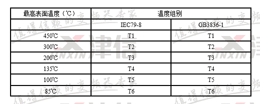 這是與氣體點燃溫度有關(guān)的電氣設備(假定環(huán)境溫度為40℃時)的最高表面溫度,點燃能量與點燃溫度無關(guān)。在標準BS5345第一部分中列出了所有可燃性氣體和其組別。