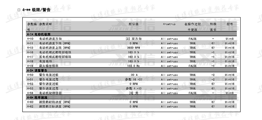 4、FC302變頻器極限和警告參數(shù)設(shè)置說明