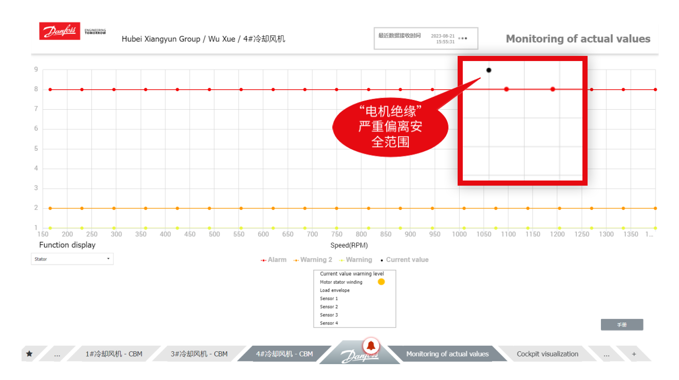 2023年8月21日,“丹管家+CBM”于線上巡檢時(shí)發(fā)現(xiàn)客戶的車間機(jī)器存在電機(jī)絕緣異常的潛在風(fēng)險(xiǎn),進(jìn)行了遠(yuǎn)程報(bào)警。線上形成遠(yuǎn)程診斷報(bào)告后,送達(dá)用戶并向其做出預(yù)警。