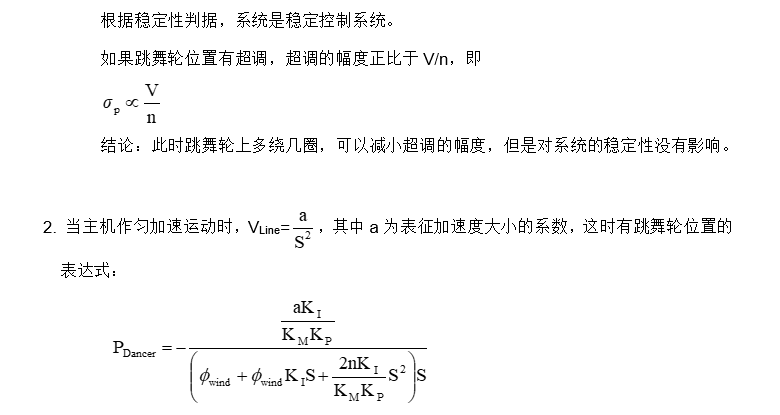 上面的方程表明跳舞輪位置反饋控制等效于以鋼簾線的線速度為輸入變量的二階控制系統(tǒng)。下面就主機工作于勻速和勻加速(減速)兩種不同的工況分別分析跳舞輪位置控制的控制特性。