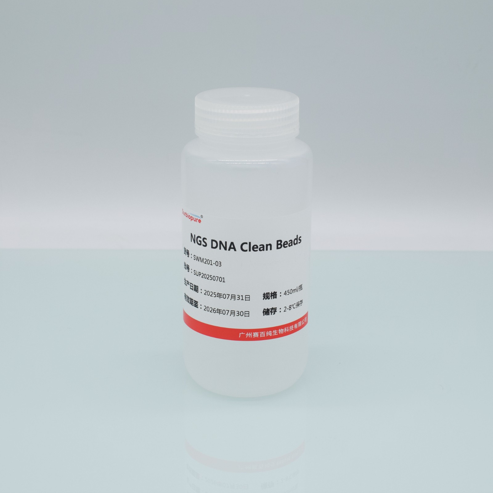 NGS DNA Clean Beads基于結合力高、快速磁響應、低沉降速度的超順磁珠,配合優化的緩沖液體系,在特定比例的磁珠懸液中,將不同分子量的核酸片段回收。本產品可適用于各品牌的 DNA、RNA 建庫試劑盒,純化DNA 回收效率高、純度高,操作方法和純化、片段篩選效果與Beckman AMPure XP一致。適用于手工及自動化工作平臺操作。本產品可手工實驗操作及自動化移液工作站的高通量實驗操作。