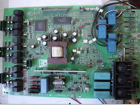 由于這幾臺(tái)VLT3000變頻器是小功率的,因此拆裝非常的方便。先檢查變頻器的主回路,測(cè)量整流模塊和逆變模塊特性良好。給變頻器的輸入端送交流電,發(fā)現(xiàn)變頻器的操作面板沒(méi)有顯示。等變頻器主回路上直流電壓釋放完全后,將變頻器的上蓋板拆下,接下來(lái)就露出來(lái)變頻器的控制卡,拆除變頻器控制卡上的兩根電纜連接線,取出控制卡。變頻器ILD卡就出現(xiàn)在我們的面前。將變頻器的ILD卡取出來(lái)做單板測(cè)試,發(fā)現(xiàn)變頻器操作面板沒(méi)有顯示,確定變頻器的ILD卡損壞。