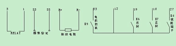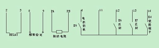 K6和K7分別控制電機正反轉(zhuǎn),K4為使能端;頻率給定方式是PLC輸出0--+10V的電壓信號對應(yīng)0—50HZ;并且KEB也是利用變頻器自身的+15V源極開機方式.以上條件丹佛斯VLT2800全部可以滿足并且能夠達(dá)到客戶所有要求的功能.