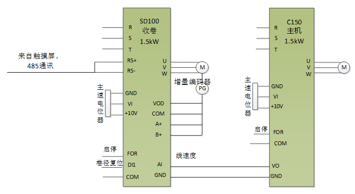 原收卷系統(tǒng)采用“變頻器+電機(jī)+磁粉+張力控制器”的模式,設(shè)備使用一段時間后需要對磁粉進(jìn)行維護(hù),且磁粉故障率較高,增加了廠家和客戶的故障點和維護(hù)成本;