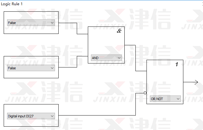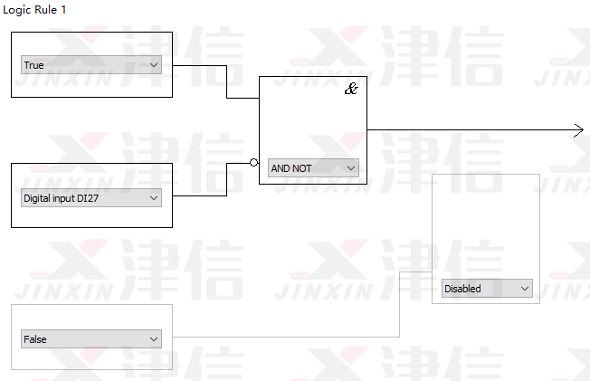 Logic Rule 1判斷是否符合停止條件。在運(yùn)行過(guò)程中,如果按下停止按鈕,27號(hào)端子斷開(kāi),經(jīng)過(guò)邏輯判斷,滿足停機(jī)要求,變頻器將停止輸出。