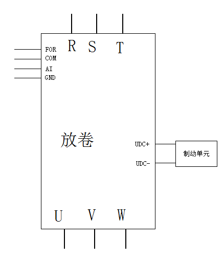 - 放卷變頻器采用開環(huán)轉矩控制,電機處于發(fā)電狀態(tài),必需接制動單元,并且與收卷變頻器共直流母線;