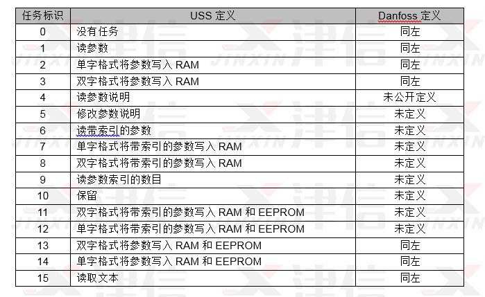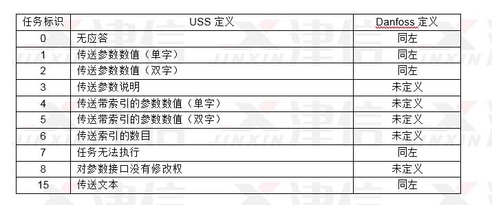 S7-200 USS4通訊子程序中用到的任務(wù)標(biāo)識(shí)與Danfoss的定義相同。