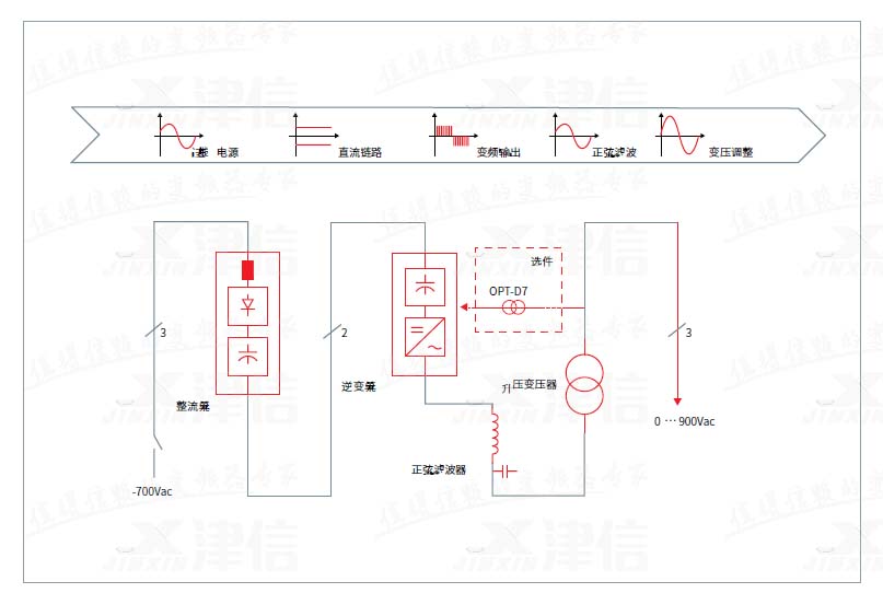 這個項目是Danfoss公司首次同天作電氣的合作項目;項目中采 用了以丹佛斯公司VACON® NX系列變頻器為電源核心的測試電源解決方案。單元+逆變單元+制動單元)、正弦濾波器、升壓變壓器、制動電阻以及輸出電壓切換開關(guān)構(gòu)成??梢蕴峁┳罡咧?250V的正弦電壓輸出。天作電氣成柜。另外包含測試操作臺,以及為了滿足測試工藝而選用的各種傳感器,功率分析儀器等。